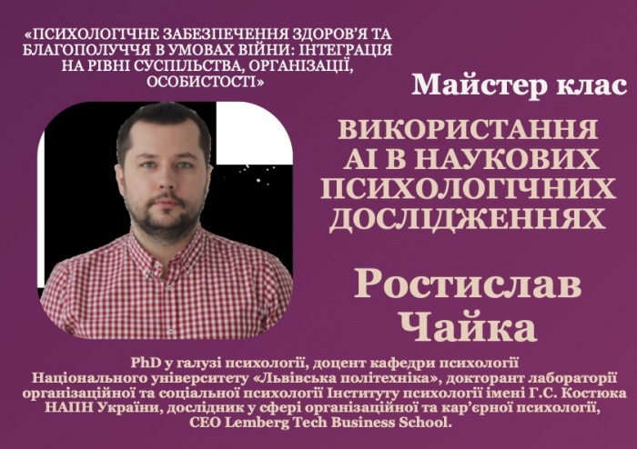 В рамках конференції відбудеться майстер-клас «ВИКОРИСТАННЯ AI В НАУКОВИХ ПСИХОЛОГІЧНИХ ДОСЛІДЖЕННЯХ» читати далі