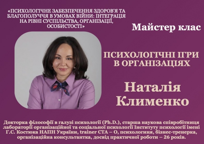 «ПСИХОЛОГІЧНЕ ЗАБЕЗПЕЧЕННЯ ЗДОРОВ’Я ТА БЛАГОПОЛУЧЧЯ В УМОВАХ ВІЙНИ: ІНТЕГРАЦІЯ НА РІВНІ СУСПІЛЬСТВА, ОРГАНІЗАЦІЇ, ОСОБИСТОСТІ», яка відбудеться